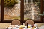 Refuge at around the fireplace, at the dining area of Neve and enjoy chef delights and drinks with your friends and family. Placed around the fireplace under the glass roof, showcasing snow capped mountain peaks and the charm of Paleos Agios Athanasios village.